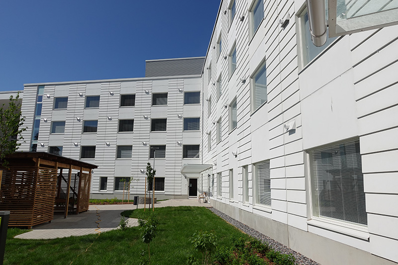 Jokaisessa kerroksessa on viihtyisä yhteinen oleskelutila ja ruokailutila sekä lasitetut terassit. Hoivakodilla on oma suojattu sisäpiha, jossa on mahdollisuus ulkoilla.
