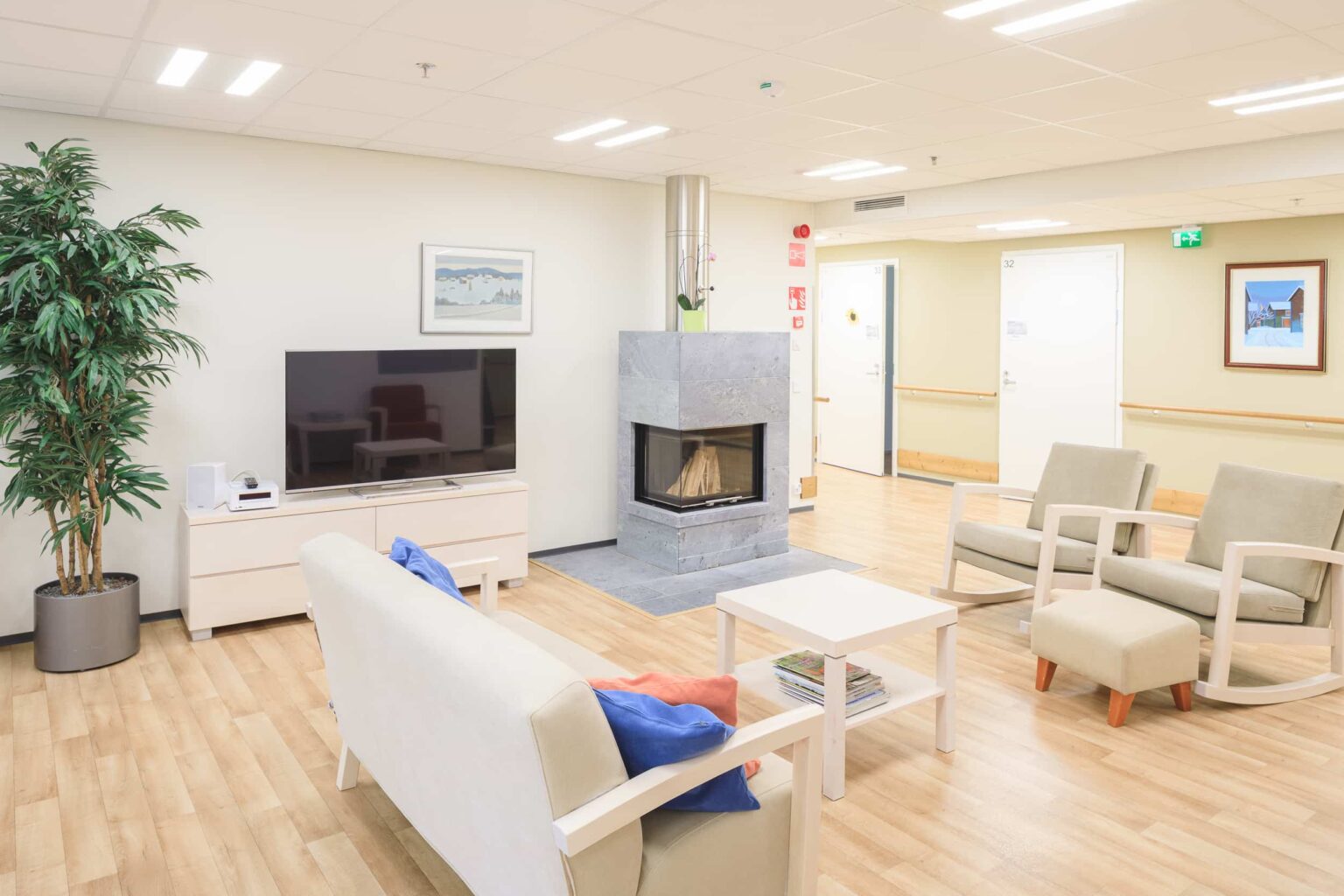 Attendo Villa Kivi on kahdessa tasossa ja jakaantuu neljään ryhmäkotiin.