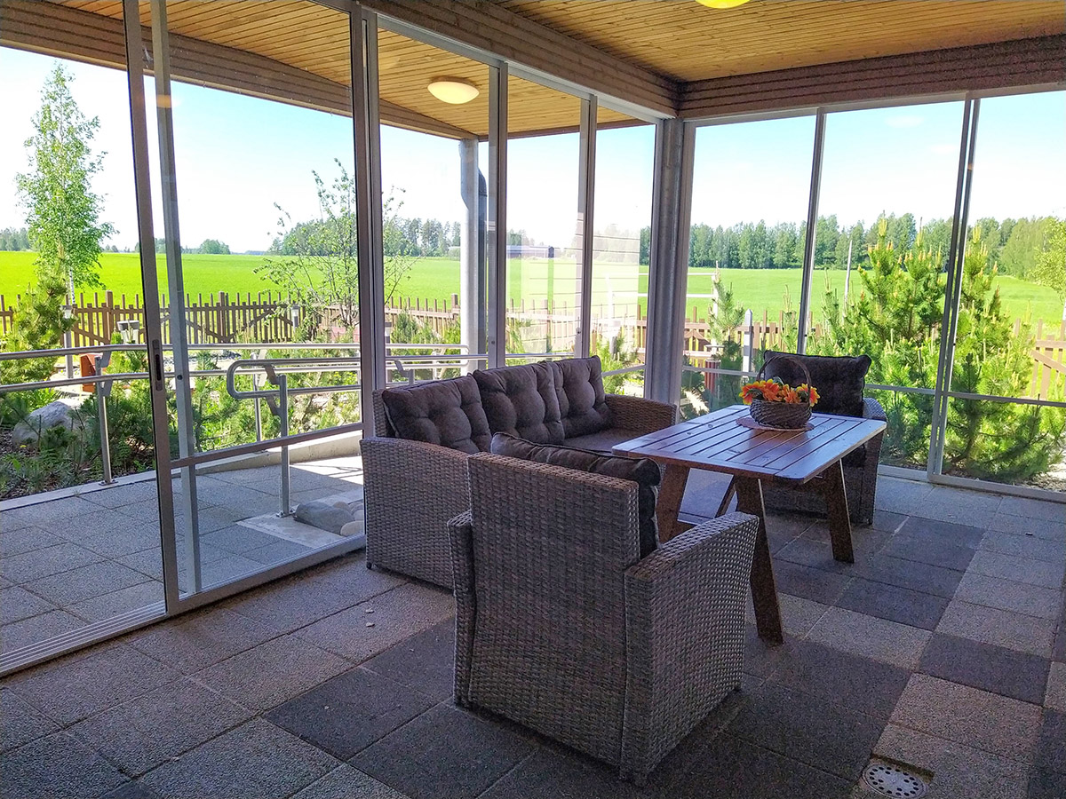 Koti ja sen ympäristö ovat esteettömiä ja suunniteltu käyttäjäryhmälleen sopivaksi. Asukkailla on oma huoneensa ja kaikille kodin asukkaille yhteinen oleskelu- ja ruokailutila sijaitsee talon keskellä. Yhteisessä oleskelutilassa on leivinuuni, joka tuo lämpöä ja viihtyvyyttä oleskelutilaan. Yhteiset saunatilat ovat myös asukkaiden käytössä ja pihapiiristä löytyy myös rantasauna, joka lämpiää kesäaikaan viikottain. Pihapiirin grillikota, kasvihuone ja rantasauna mahdollistavat arkiset ja kodinomaiset kokemukset lähellä luontoa. Luonnossa liikkumisen ja tekemisen ohella asukkaat saavat käydä kukin kuntonsa ja vointinsa mukaisesti kodin kuntosalilla.